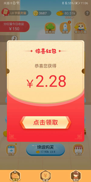 猫咪小屋(原生财喵)是阳光养猪场公司新推出的合成赚钱小游戏,登陆填写邀请码:126867789,送新手红包,首次0.3元起提现,后续30元起提现。